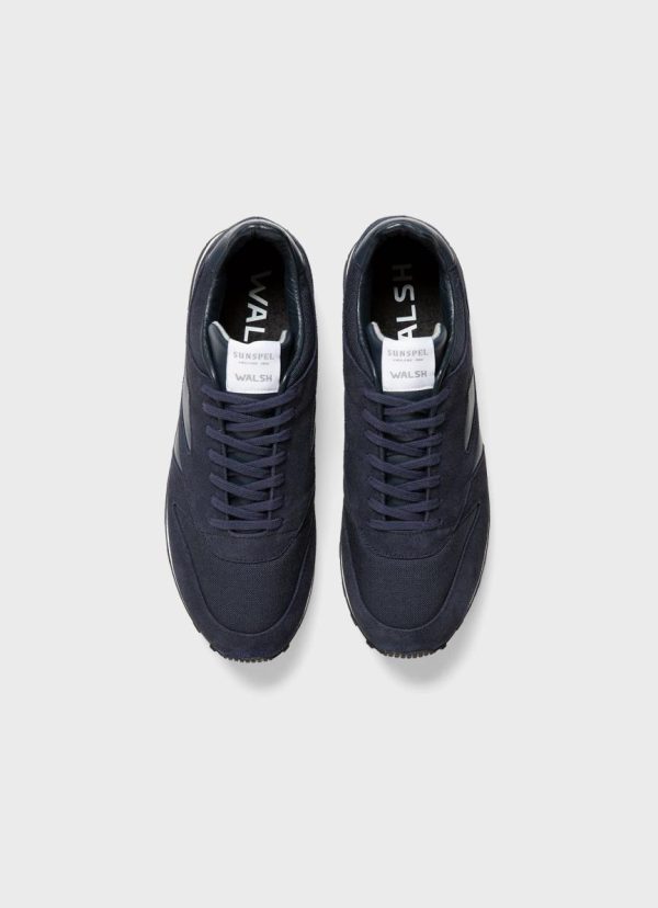 Heritage English footwear brand Walsh Sneakers have been making running shoes at their Bolton factory since 1961. We have reworked one of their most iconic styles in soft suede, leather and fabric detailing for a smart take on a technical running shoe, made here in England.