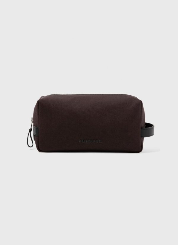 With a single leather strap, this neat washbag is crafted in a fine, water-resistant bonded organic Italian cotton canvas and branded with a subtle rubber Sunspel logo.