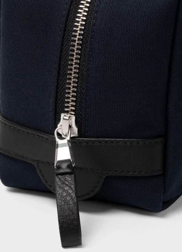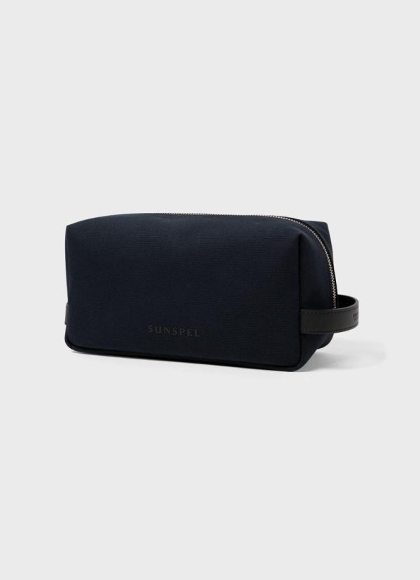 With a single leather strap, this neat washbag is crafted in a fine, water-resistant bonded organic Italian cotton canvas and branded with a subtle rubber Sunspel logo.