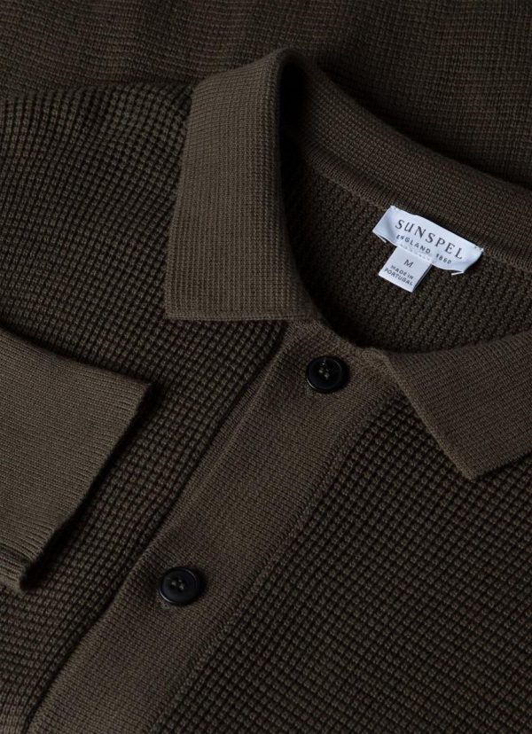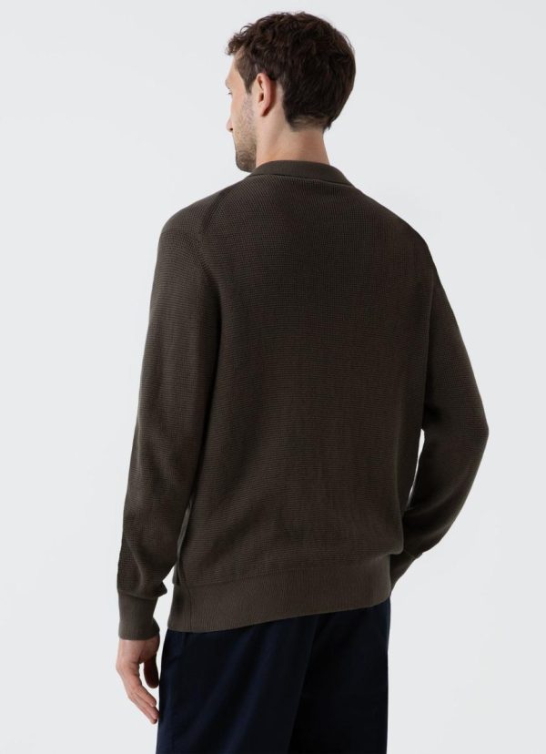 A transeasonal knitted jacket crafted in a waffle stitch knit made from the finest Egyptian long staple cotton. The slight texture makes it soft and smooth and it has an open, cardigan-like feel with a relaxed fit. It has ribbed cuffs and hems and two front pockets. Perfect for layering over a T-shirt or under a jacket.