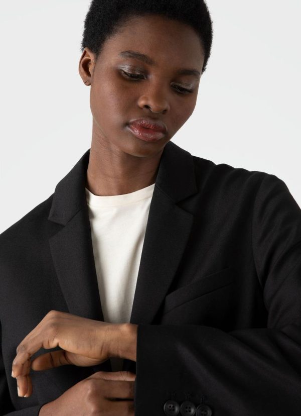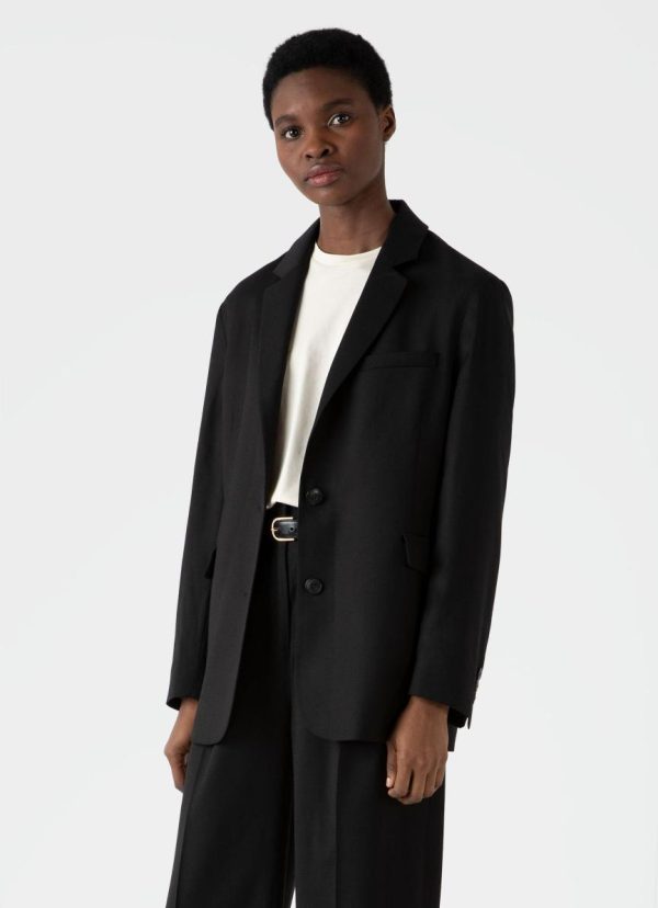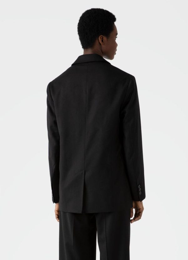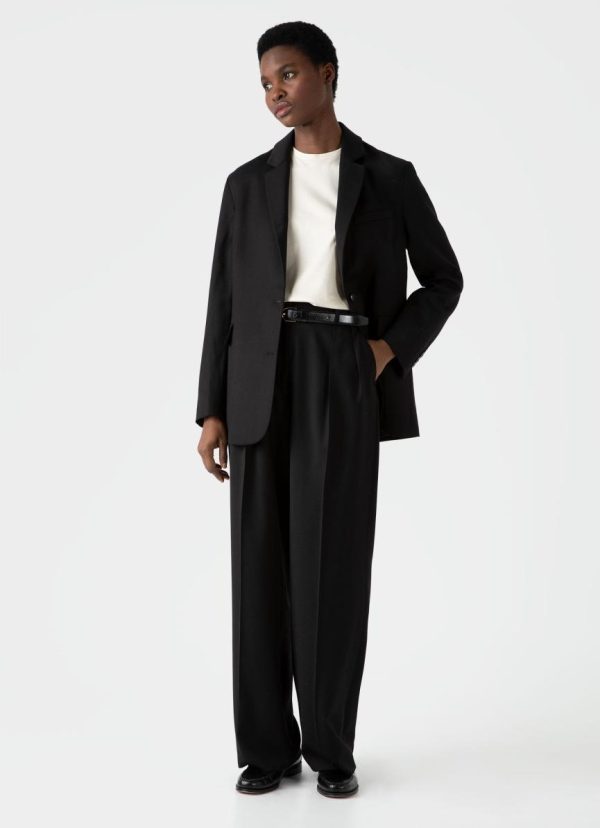A versatile blazer crafted from luxuriously soft Italian wool and woven with elastane for a slight stretch and added comfort. It is unstructured and has a relaxed fit and elongated proportions, making it sharp and contemporary. This is a smart casual essential that can be worn over a T-shirt or with the matching trouser for a complete suit.