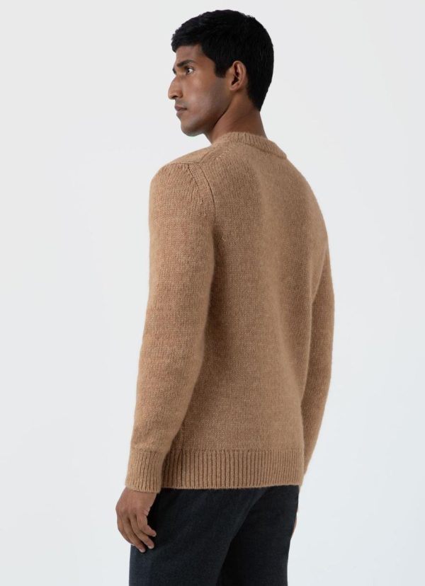 A luxurious Alpaca wool jumper, crafted in England using the finest Italian-spun Alpaca wool that’s blended with super-fine lambswool and cotton to give it a natural hairy finish. With an easy shape and elevated neck trim, it is an exceptionally comfortable piece. The ultimate warm winter jumper.