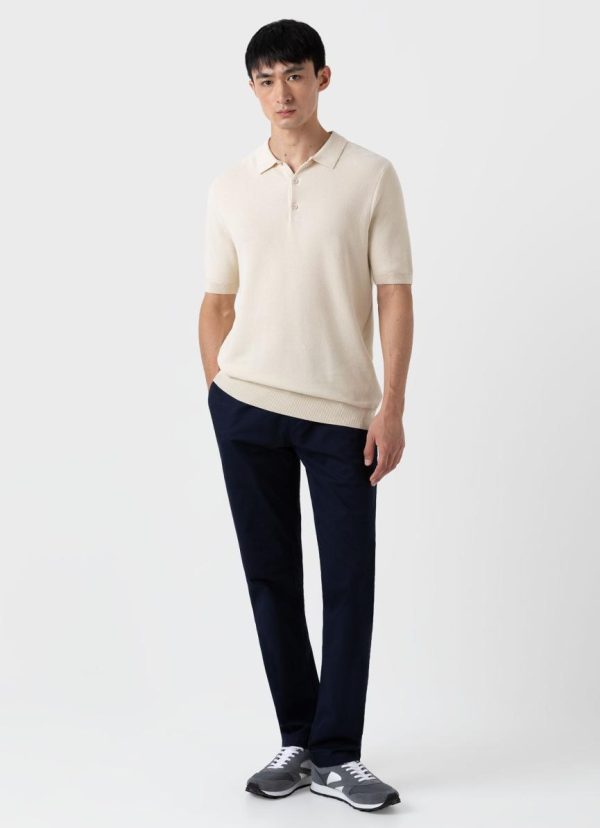 A classic short sleeve polo in a fine textured cotton knit. Spun in Italy and made with Egyptian long-staple cotton for a smooth, soft feel. Regular fit with rib detailing on the collar and hems. Wear with our slim fit trousers for a smart, stylish look.
