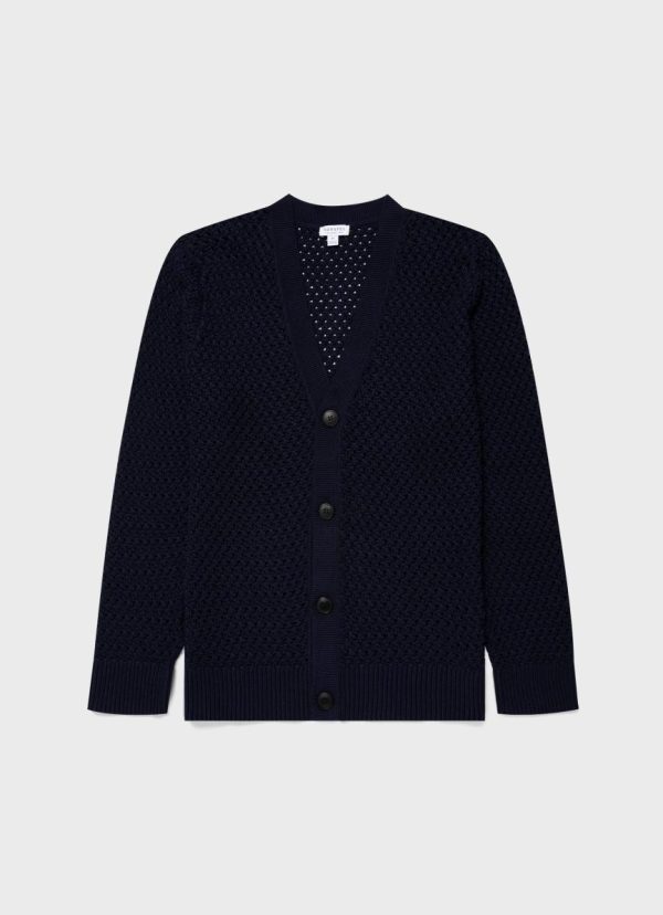 Sunspel Knitwear | Open Stitch Cardigan In Navy Men