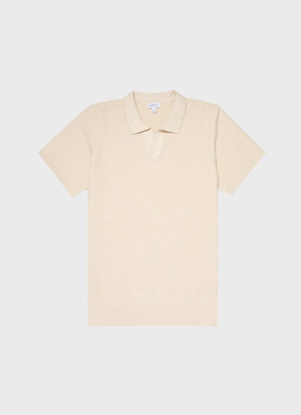 This textured, heavy-knit polo is the pinnacle of summer luxury. Spun in Italy and made from the highest-quality long-staple Egyptian cotton. The unique knit stitching is a luxury innovation inspired by our cellular jersey fabric which we invented in 1914. It sits effortlessly on the body and features a buttonless open neck that is perfect for summer. Style with our Cotton Twill Drawstring Short for the ultimate summer style.
