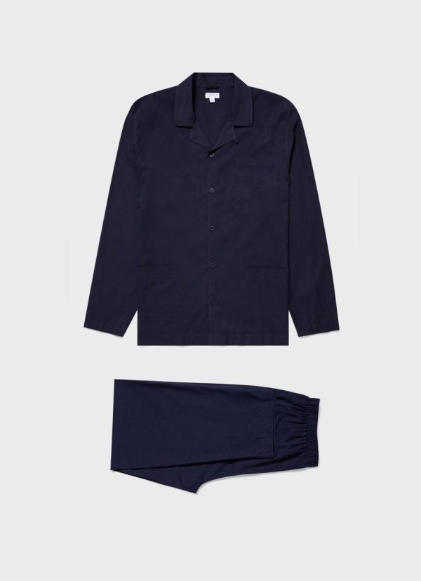 Our contemporary take on a classic pyjama set, crafted from a luxuriously soft brushed cotton flannel. Drawing inspiration from archive Sunspel nightwear, the shirt features a three-pocket design and modern cut. The trousers feature a hidden button fly, back patch pocket, side seam pockets on each leg and an elasticated waistband which adds essential comfort.