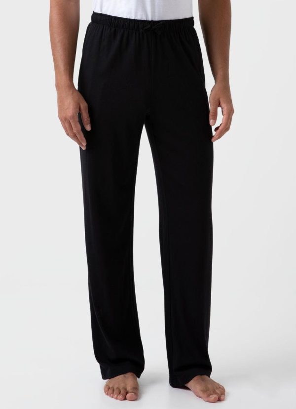Our lounge pants are cut in cotton modal jersey for a luxurious finish and loose, fluid drape. A relaxed cut and an elasticated waist with herringbone drawstring detail. Perfect for wearing during downtime.