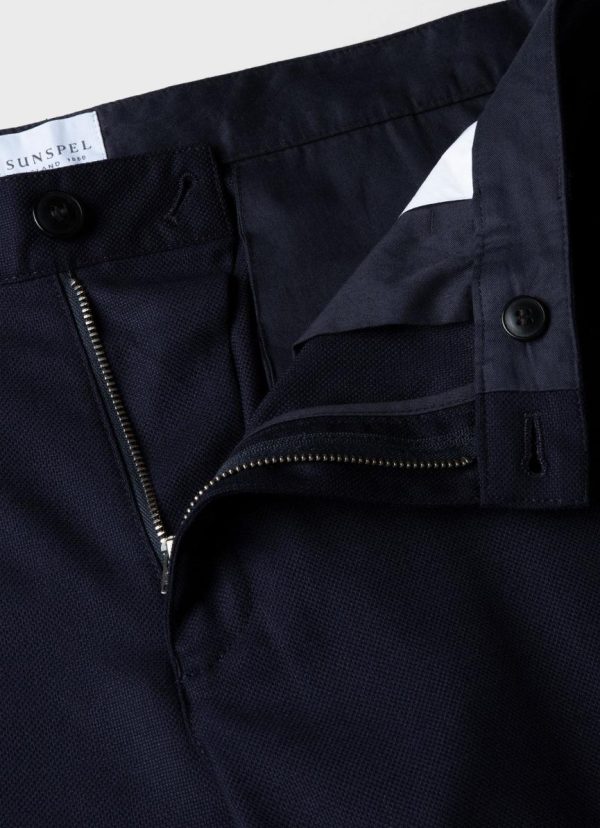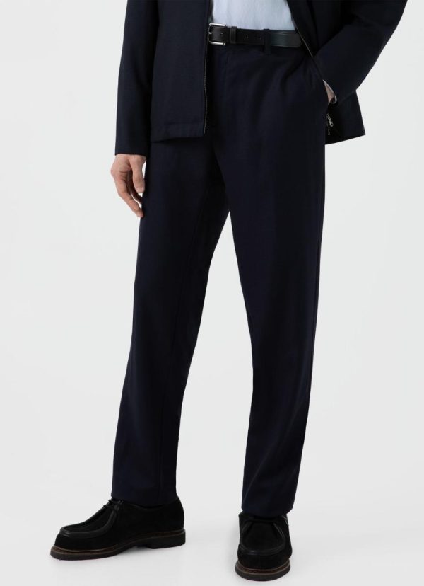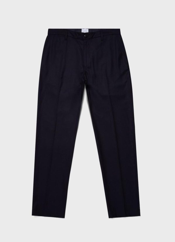 A regular fit, straight leg trouser made in a soft, Italian-made travel wool that doesn’t crease. Has a mid rise, an inside tailored waistband and a press crease. Pair with the matching blazer for a suit that’s ideal for work or formal occasions.
