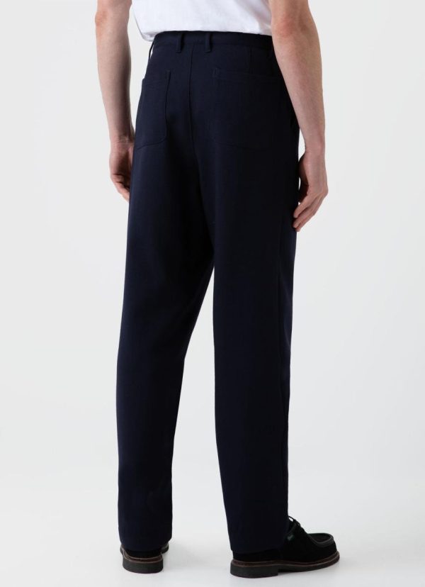 A wide leg chore trouser crafted in a luxurious heavy wool twill from a luxury mill in Prato, Italy. With a flat front, it has a loose fit and a relaxed, easy feel. Pair with the matching jacket for the ultimate winter suit.