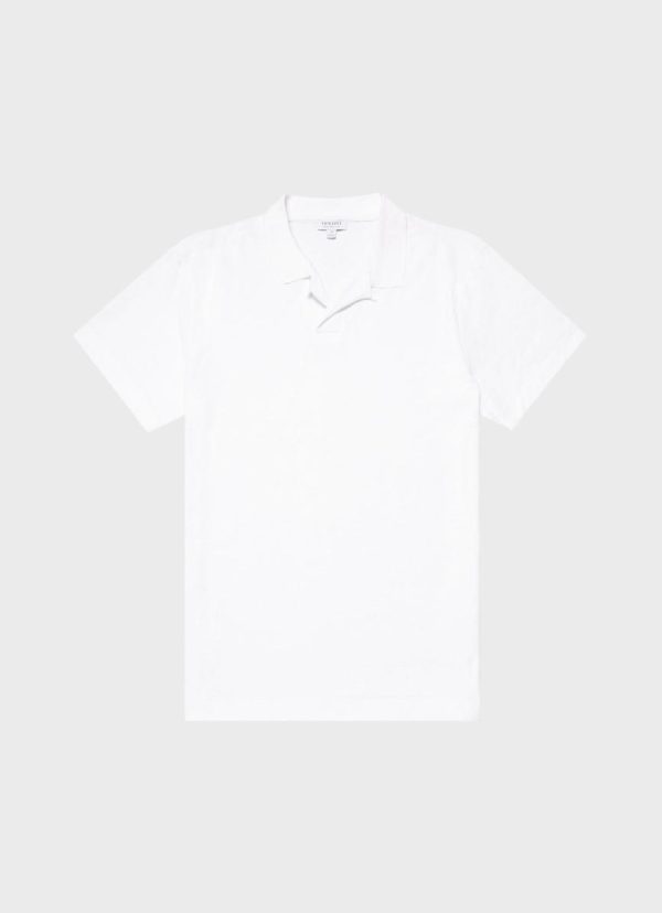 Our organic towelling fabric is particularly soft and breathable against the skin. With a ribbed collar and open neck with hidden under-collar button, this is an easy choice for poolside dressing. Pair with our printed swim shorts or towelling shorts.