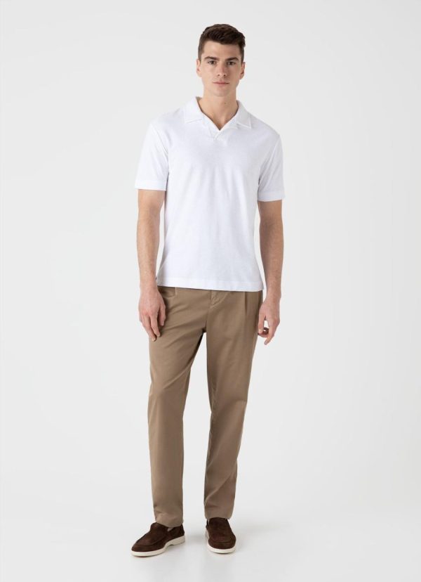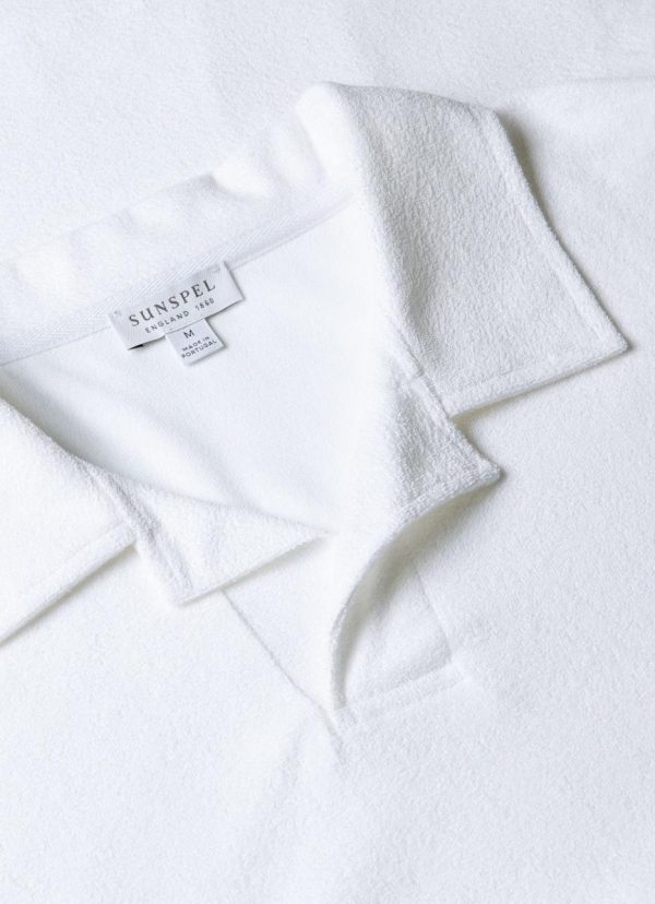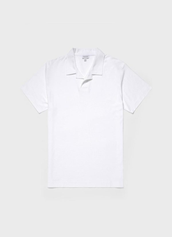 A summer polo shirt in a super-soft organic cotton towelling that’s lightweight and breathable. With a clean open placket and buttonless collar, it’s both smart and contemporary. The ultimate holiday essential.
