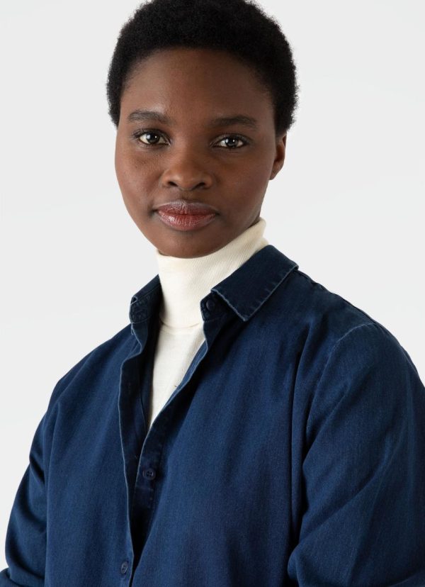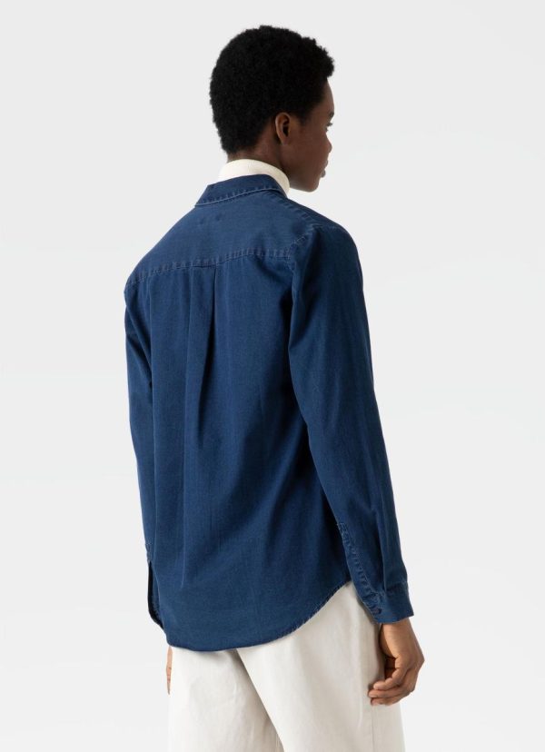 Our classic shirt is updated in a washed indigo twill for a more casual feel. The Italian-woven cotton is washed to a light indigo for relaxed look and has a soft feel. Classic shirt style with a slightly curved hem and back box pleat, and a relaxed cut for ease of movement. This is an easy everyday shirt you could layer over our classic T-shirt and pair with a chore trouser.