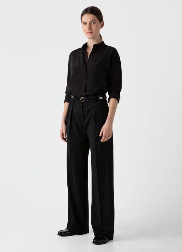 The back box pleat and relaxed cut give ease of movement. Pairs well with our wide leg trouser.