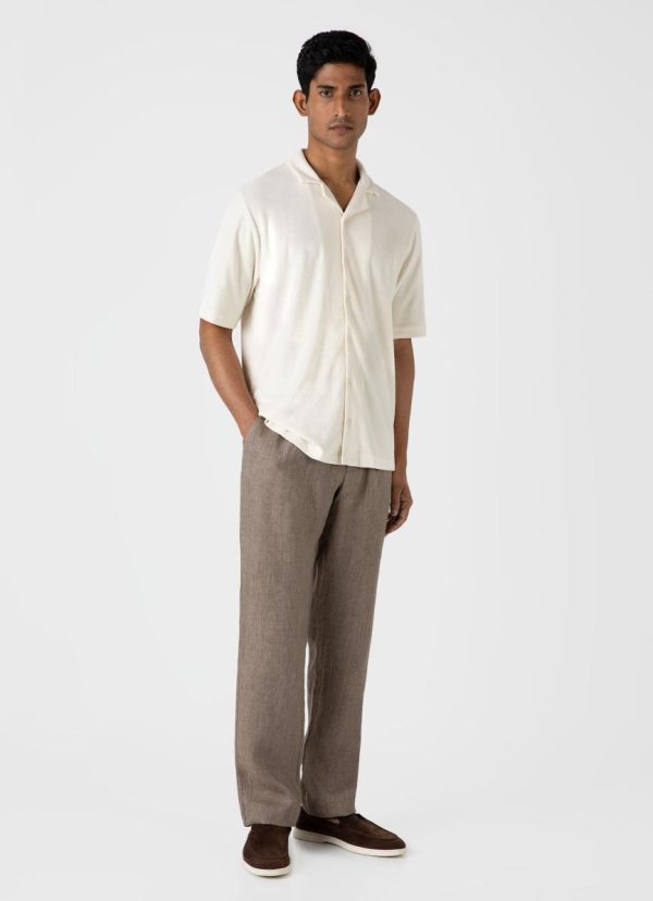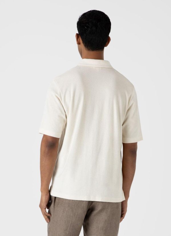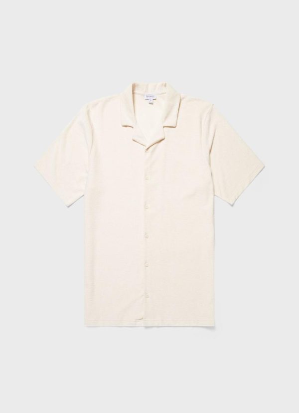 An elevated short sleeve summer shirt in a super-soft organic cotton towelling that’s lightweight and breathable. With a clean camp collar, it’s a contemporary, versatile summer layer. Pair with our cotton linen shorts.