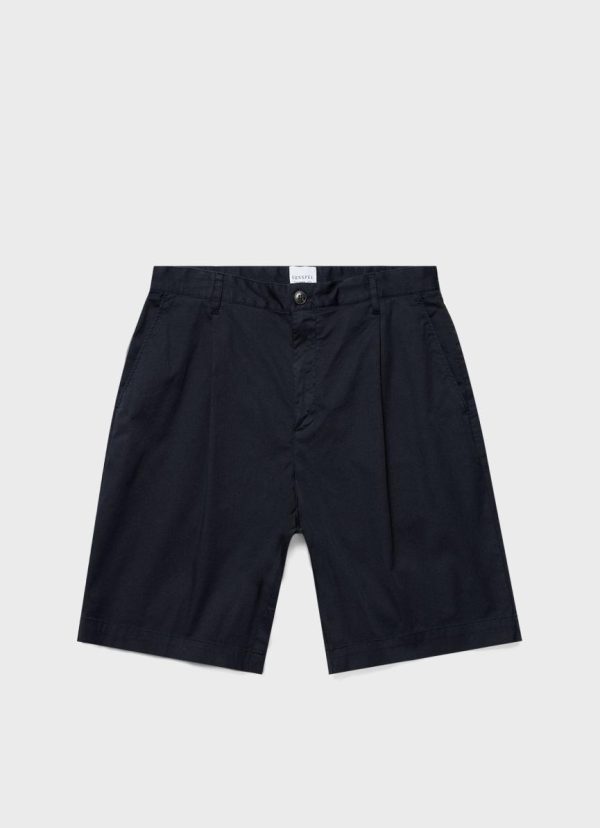 Sunspel Shorts | Pleated Twill Shorts In Navy Men