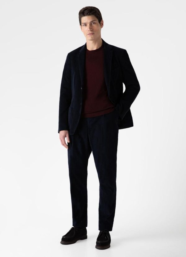A modern unstructured suit in a beautifully soft narrow wale corduroy from a specialist French mill. With a slight stretch and garment-dyed for a worn-in feel, the jacket is designed to feel as comfortable as wearing a cardigan, with a regular fit, two horn buttons, a top welt pocket and clean bluff pockets. The trouser has a mid to long rise with a single pleat, a relaxed fit and a light taper down to the hem.