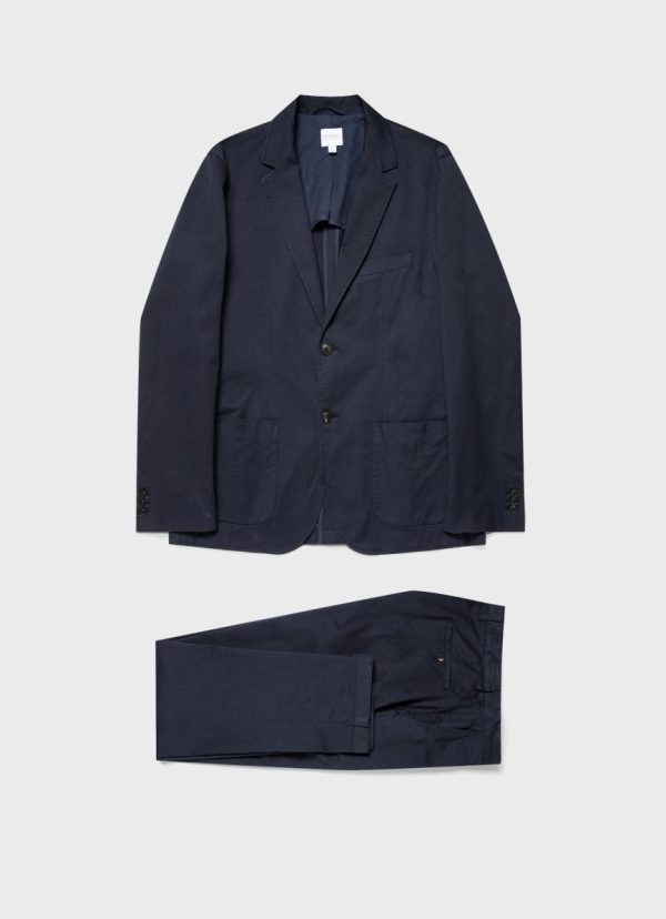 A relaxed, everyday suit with a contemporary look. Made in a lightweight stretch cotton with a soft handle, sourced from a renowned French mill. The jacket is unstructured with a regular fit, two horn buttons, two side pockets and an internal welt pocket. The single pleat trouser has an easy fit with a lightly tapered leg.