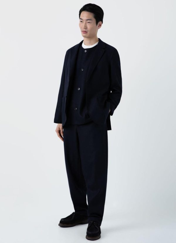 The jacket and waistcoat are modern and highly versatile pieces with a relaxed silhouette and raw detailing. The trouser has an easy wide leg and is super-soft on the skin. All can be worn on their own or as part of the suit.