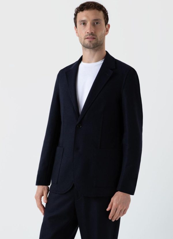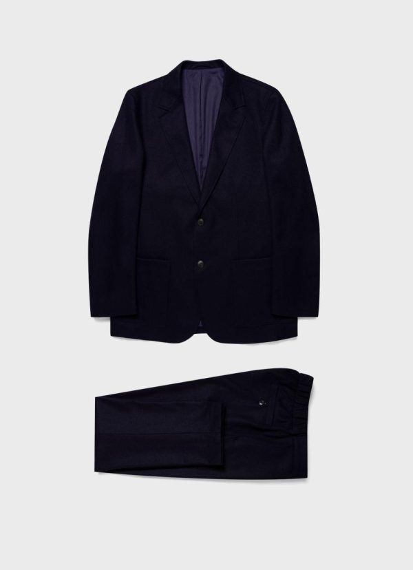 The jacket is a modern and highly versatile piece with a relaxed silhouette and raw detailing. The trouser has an easy wide leg and is super-soft on the skin. Both are as wearable on their own as they are as a suit.