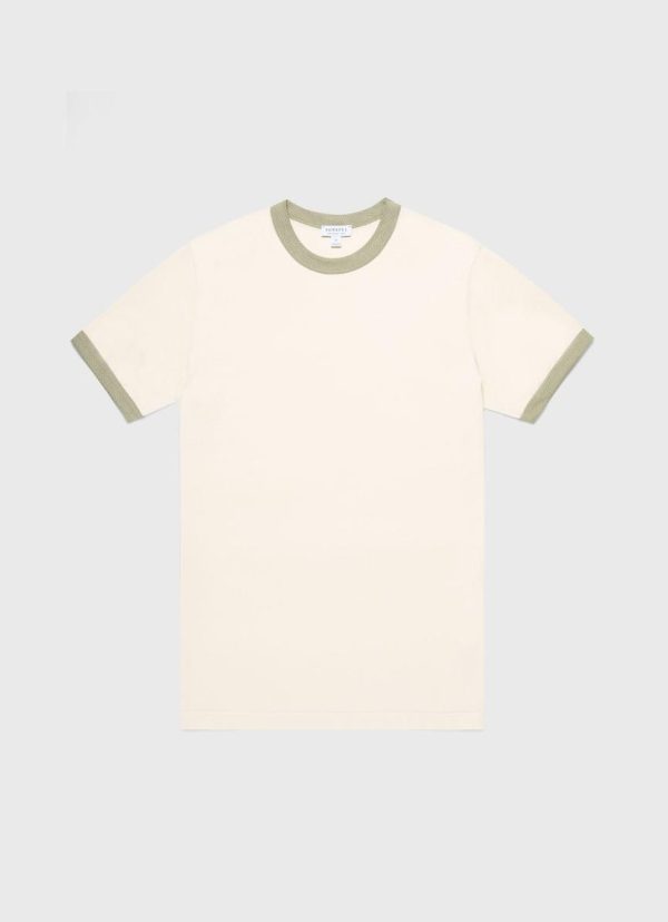 Our take on a classic ringer T-shirt, combining two of our most iconic fabrics. Handmade in the Sunspel factory in Long Eaton, England from our Supima cotton jersey, with wide-bound contrast neck and sleeve hem in our Q75 mesh.