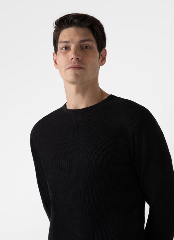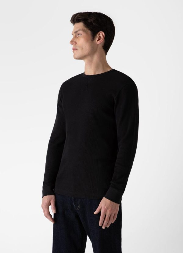 A lightweight, long sleeve T-shirt, made with a cotton waffle fabric, specially developed for a soft handle. Crafted from extra-long staple Supima cotton which is sustainably grown and traceable to a single Californian farm. Features sweatshirt detailing, and a ribbed hem and cuff. Pairs perflectly with jeans and a Twin Pocket Jacket.
