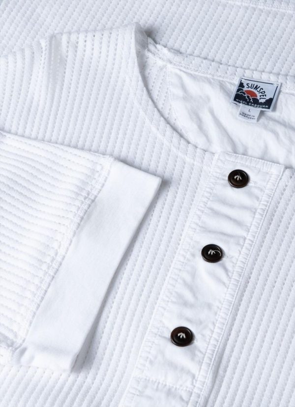 Inspired by a similar piece found in our archive, this Henley is crafted from Supima cotton mesh and has a military feel. It’s garment dyed for a soft handle and has a wide woven placket which features Nigel Cabourn’s signature arrowhead buttons. It has a relaxed, easy silhouette and is exceptionally comfortable. Ideal for layering or wearing as a standalone piece.