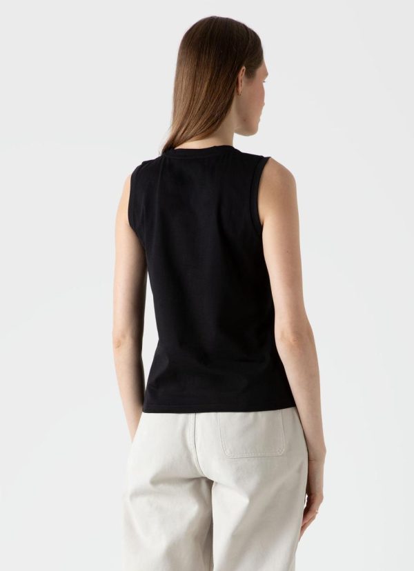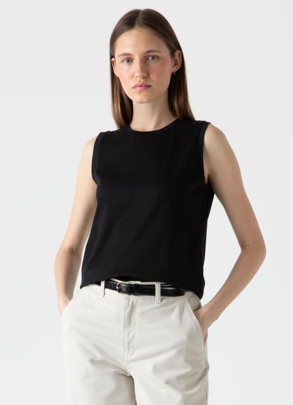 An easy tank T-shirt, with the same clean neckline as our boy fit T-shirt. Sleeves skim to the shoulders and are neatly finished to match the neckline.