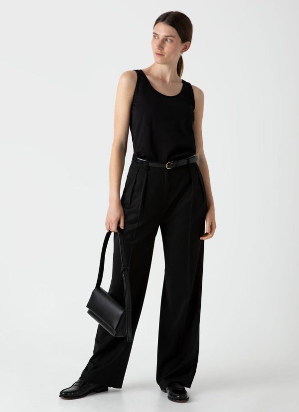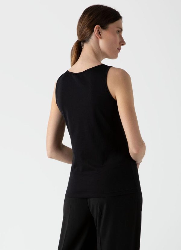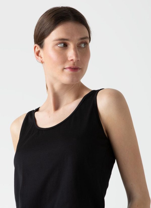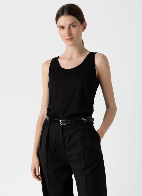 A classic vest cut for a slim fit with a scooped neckline and neat straps, made in our factory in Long Eaton, England.