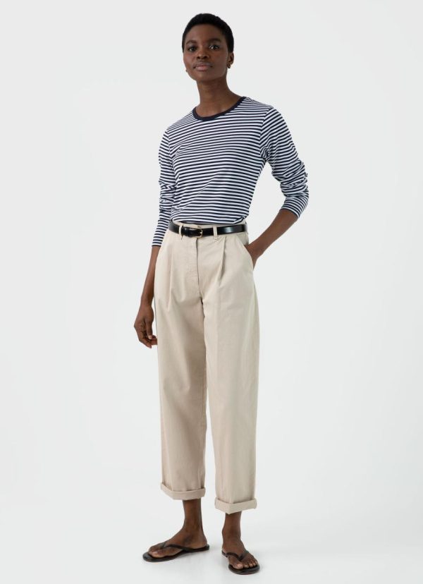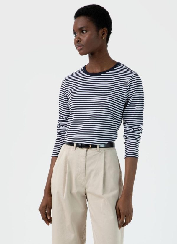 The same body skimming fit and silhouette as our classic crew, but with the addition of full-length sleeves. Sunspel’s signature Supima cotton jersey ensures softness and comfort. A perfect layering piece offering more coverage, and the styling options are endless.