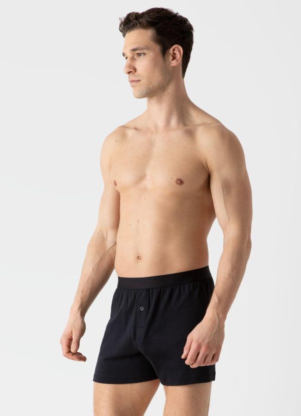 These one-button boxer shorts are classics of British style. Crafted from rare, long staple Sea Island cotton that’s grown and handpicked in the Caribbean, with a long staple fibre gives the yarn strength and luxurious softness. Cut to the same fit as our classic one-button boxer short.